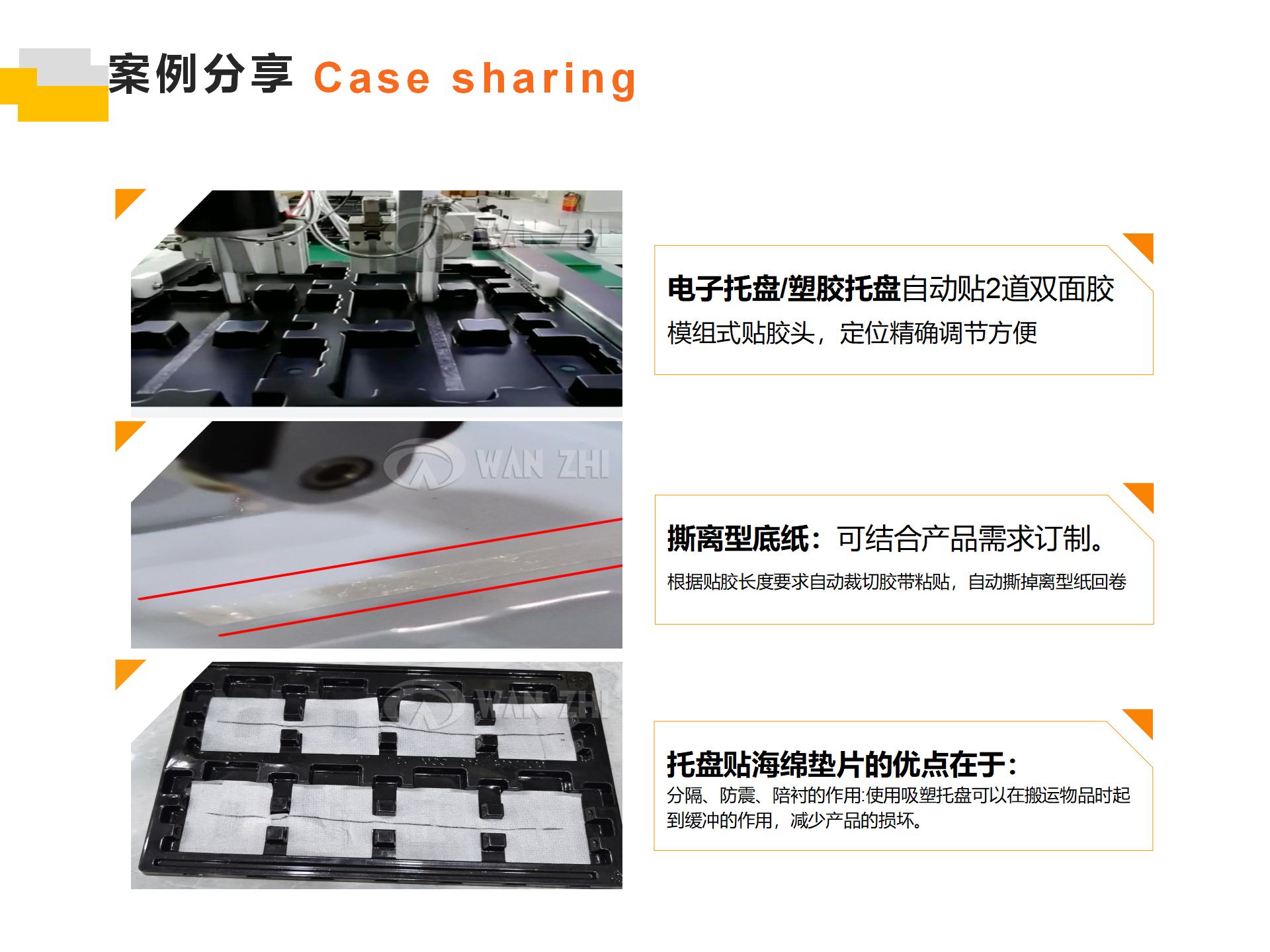 萬(wàn)志自主研發(fā)的塑料托盤(pán)自動(dòng)貼膠機(jī),能滿足不同塑料托盤(pán)、電子托盤(pán)工廠自動(dòng)貼雙面膠、貼海綿墊的需求。